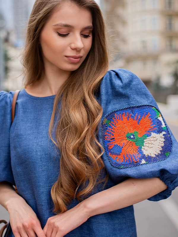 Блуза з коротким рукавом і вишитими гранатами на планці