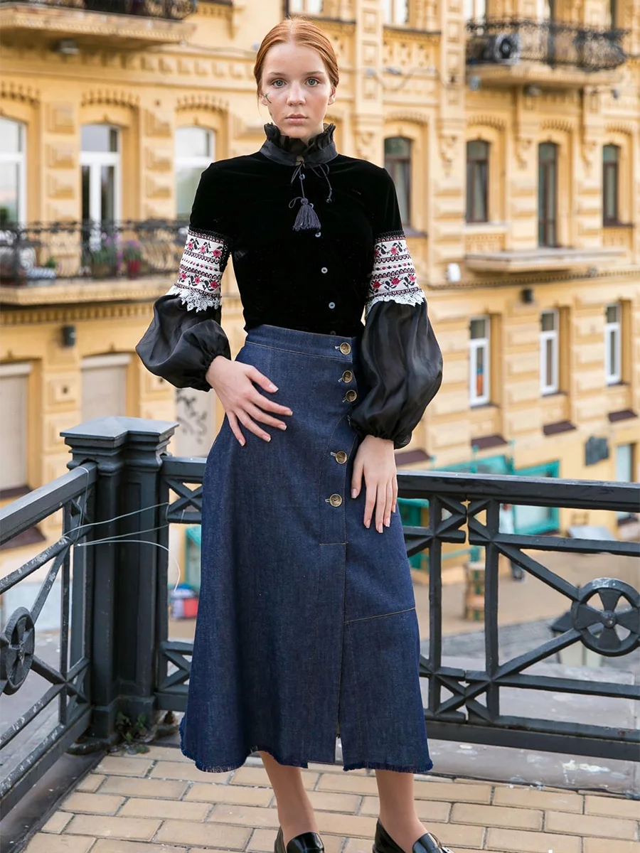Блуза чорна з вишитим білим фрагментом на рукавах кількість
